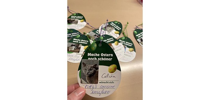 Fressnapf Geislingen hat einen großen Aufbau für uns vorbereitet, Kärtchen mit Wünschen vom Tisch bzw. von den Frühlingszweigen nehmen und unseren Tieren ein kleines Geschenk kaufen.