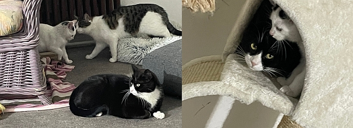 Sie verstecken sich alle gerne in einem Katzenhaus mit Deckel und unser Walter liegt zu gern auf den anderen drauf.